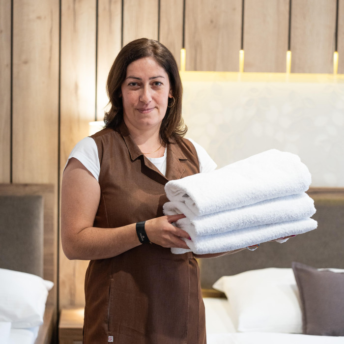 Although she is a trained pastry chef, she already had experience as a maid, so we didn't have much time to train her. She fit in very quickly with the other girls, always willing to help her colleague Yusima, who came to us from faraway Cuba. She spends her free time taking care of the household, where she lives with her teenage daughter Kristínka, her boyfriend Jožek, and her bunnies Sivy ušek and Bojušek. She likes to bake and actively relax in nature.
