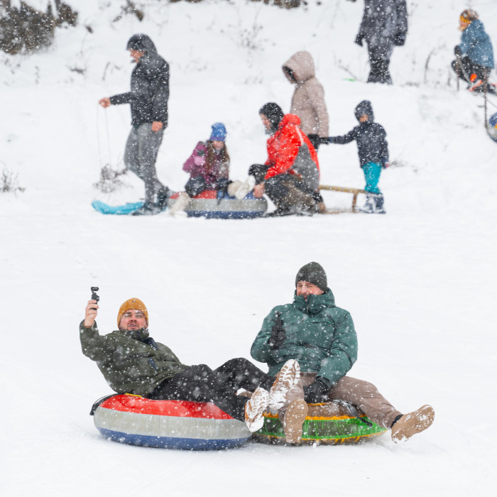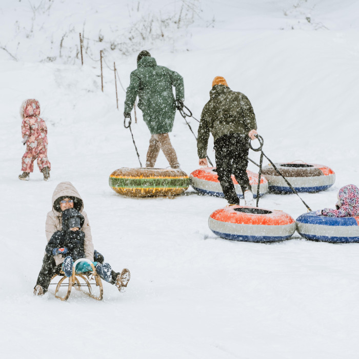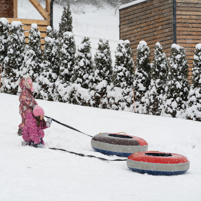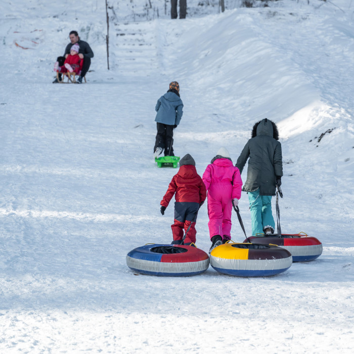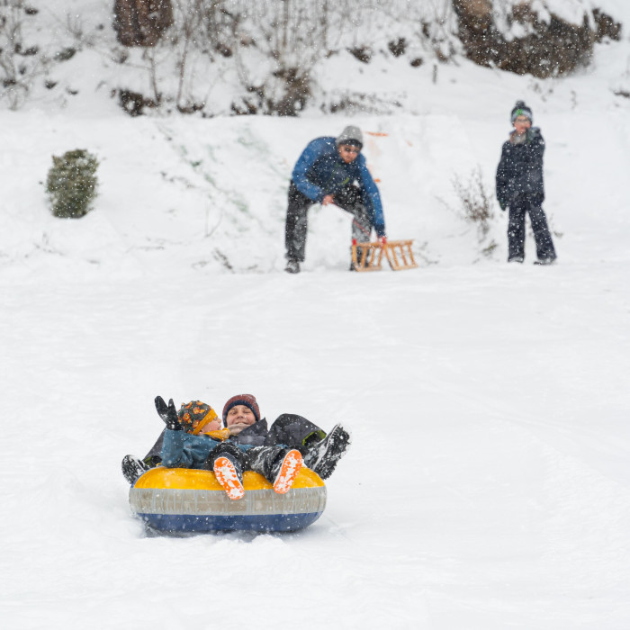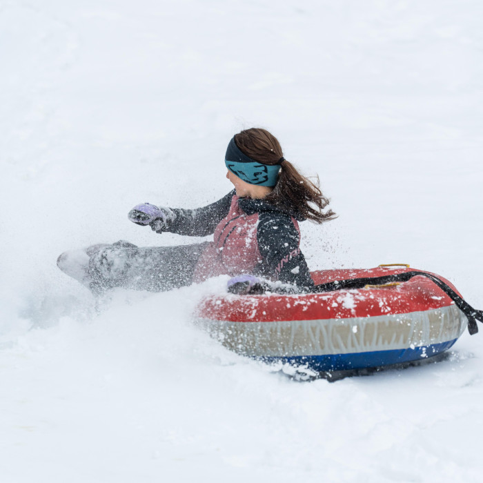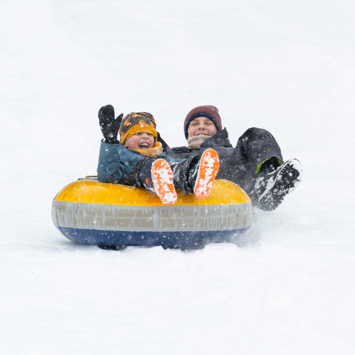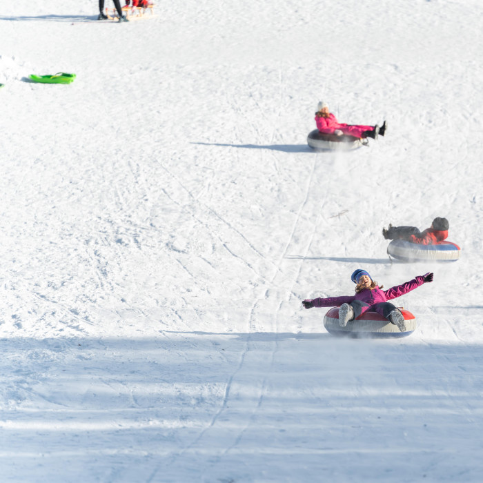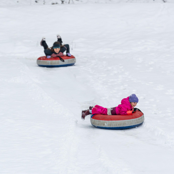 We ask guests on sleds, skis and bobsleighs to use the part of the hill outside the track designated for snowtubing.