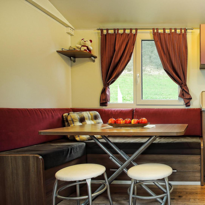 Mobilný dom nie je dispozične riešený pre umiestnenie detskej postieľky.