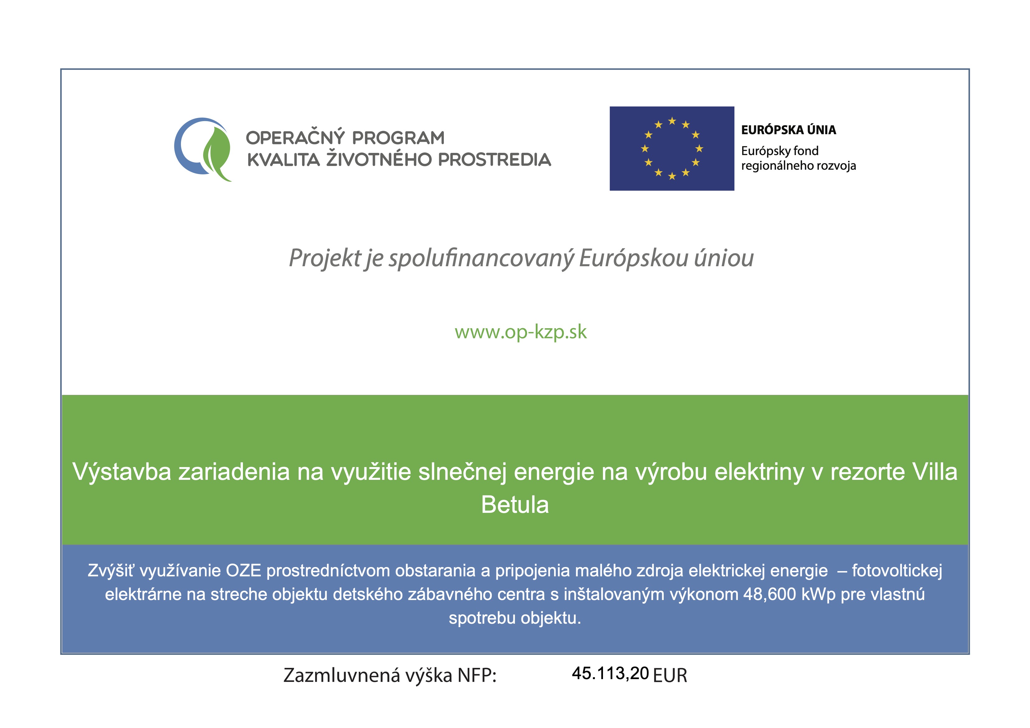 Zazmluvnená výška NFP: 45.113,20 EUR